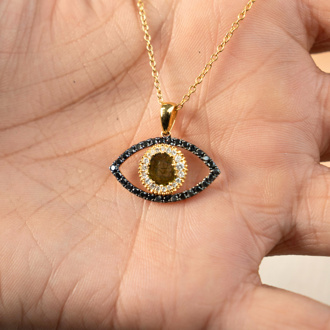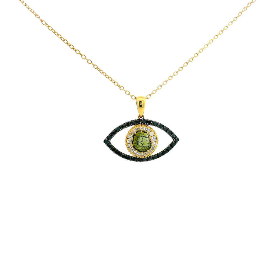 The luxurious yet indisputably modern, an evil eye necklace that you'll never want to take off. It is handcrafted with special care and designed with a gorgeous glare. The deep emerald comes alive and spreads good luck and protection.