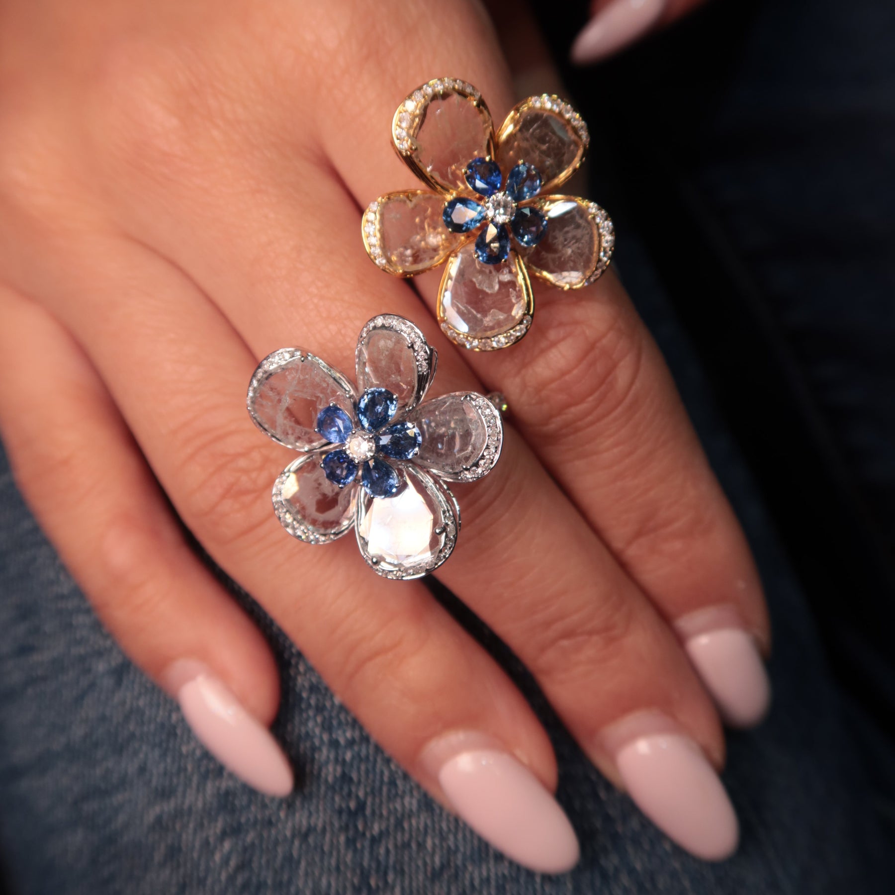 Fiona Fleur Ring – 18K Blue Sapphire Slice Diamond Ring