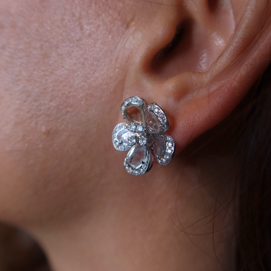 The Fiona Blanc Earrings are timeless yet distinctive, featuring white slice diamonds framed by round brilliant diamonds in 18K white gold. Designed for versatility, these elegant studs strike the perfect balance between everyday wear and refined sophistication. The organic beauty of the slice diamonds, combined with the radiant brilliance of the round diamonds, makes them a standout addition to any collection.
